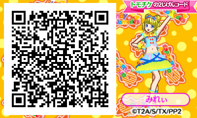 17年12月29日発売の「ちゃお 2月号」に2じげんコードがのっているよ!この2じげんコードをよみとってね! ニンテンドー3ds 12/7更新アイドルタイムプリパラ 夢オールスターライブ! スペシャル2じげんコード情報に関するお詫び プリパラ トモチケ30枚目 お気に入りの衣装をすぐ使いたい場合はきらきらマイ☆デザインのQRコードを持って行くのがお勧めです。 Q:着せ替えに友達から借りた衣装は使える? A:3rdから一部使えるようになりました。 プリパラ トモチケ34枚目 自分でqrコードを作るにはプリズムメモリーパスを使用してお店に有るプリティーリズムのゲーム機でプレイする必要が有ります。 詳しくはきらきらマイ☆デザインのサイトへどうぞ!